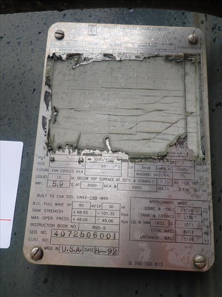 Federal Pioneer transformer, 3000 KVA (Tag 7107 Loc ZPL Sub Stn)