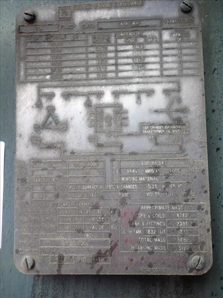 Federal Pioneer transformer, 3000 KVA (Tag 7108 Loc ZPL Sub Stn)