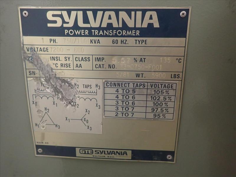 Sylvania transformer, 750/1000 KVA (Tag 7585 Loc Casting)