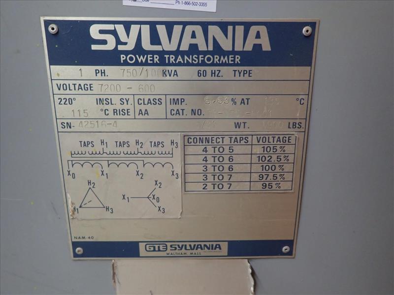 Sylvania transformer, 750/1000 KVA (Tag 7619 Loc Casting)