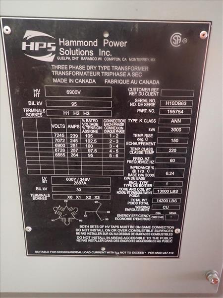 Hammond transformer, 300 KVA c/w JRS switchgear, SquareD switch assembly, etc. (Tag 7722 Loc Bedding House)