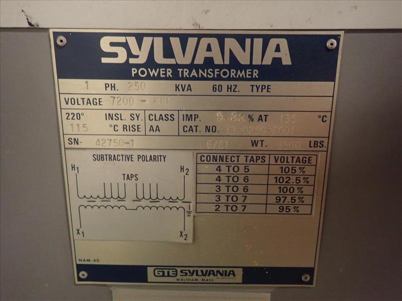 Sylvania transformer, 250 KVA (Tag 7593 Loc Casting)