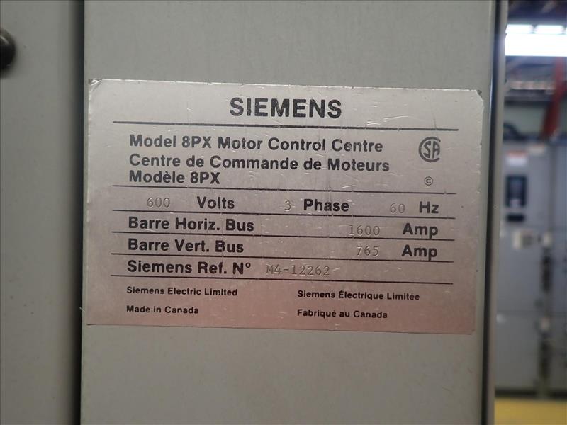 Siemens motor control center, mod. 8Px, 600V, 1600A, 60 Hz, 3 Ph (Tag 7016 Loc Oxygen Plant)