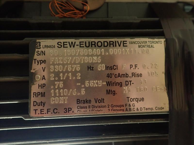 (2) Sew Eurodrive gearboxes, mod. R87/A, ratio 27.88:1, 3/4 hp (Tag 7908 Loc WH South)