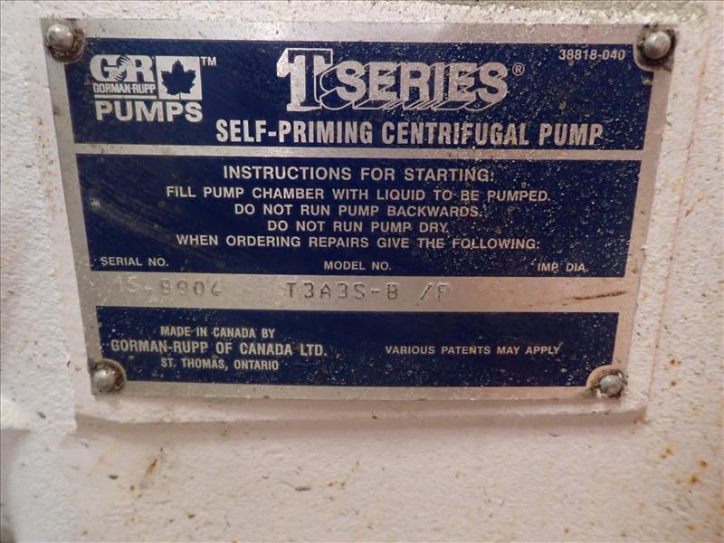 (2) GormanRupp centrifugal pump, mod. Super T Series T345S-8/F, self-priming, 15 hp ea., skid-mounted c/w valve (Tag 7541 Loc Casting)