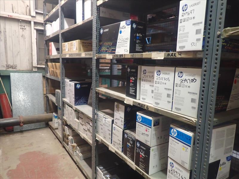 contents of shelving: printer cartridges, spare parts, etc. (Bin 521) (Tag 8016 Loc WH South)