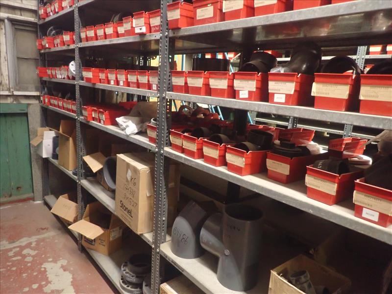 contents of shelving: piping, pipe fittings, spare parts, etc. (Bin 527) (Tag 8022 Loc WH South)