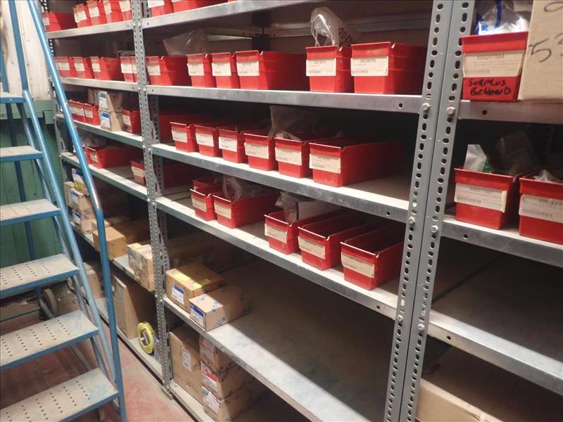 contents of shelving: switches, relays, electrical, spare parts, etc. (Bin 538) (Tag 8030 Loc WH South)