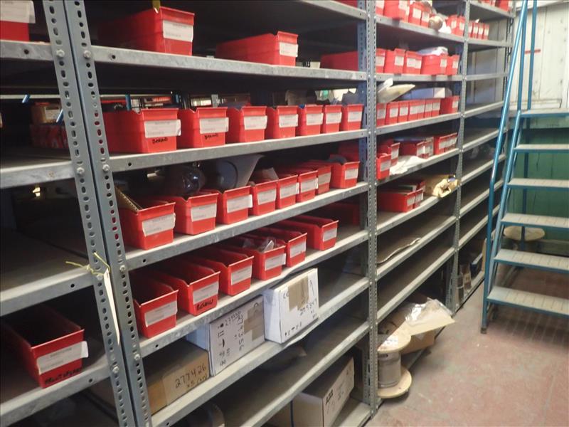 contents of shelving: modules, converters, relays, spare parts, etc. (Bin 537) (Tag 8031 Loc WH South)