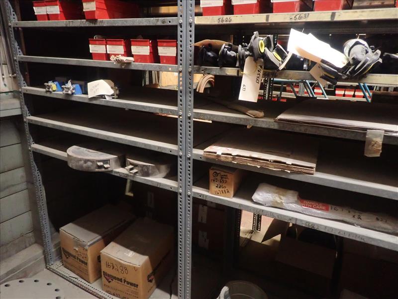 contents of shelving: pumps, actuators, gaskets, spare parts, etc. (Bin 637) (Tag 8045 Loc WH Yard)