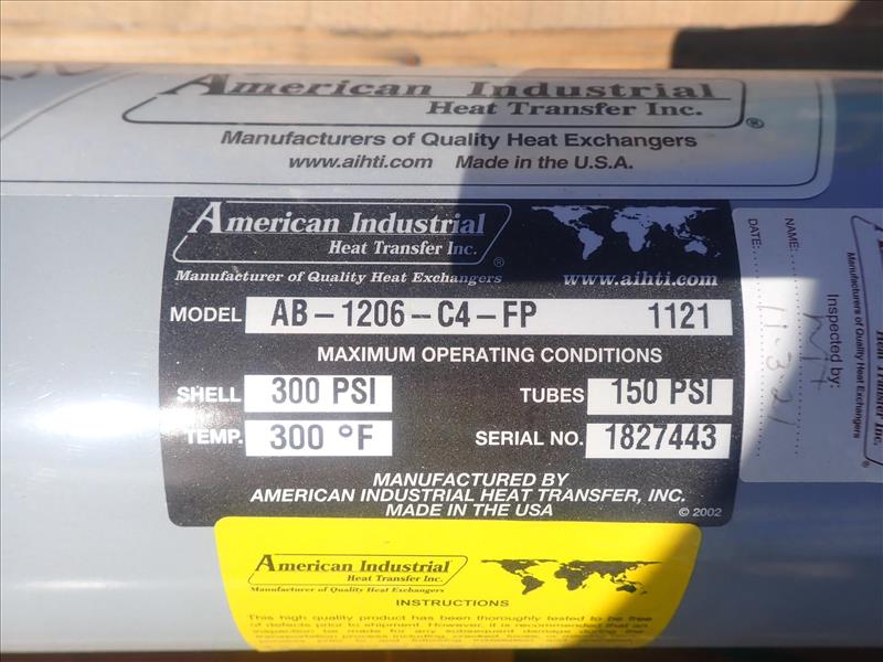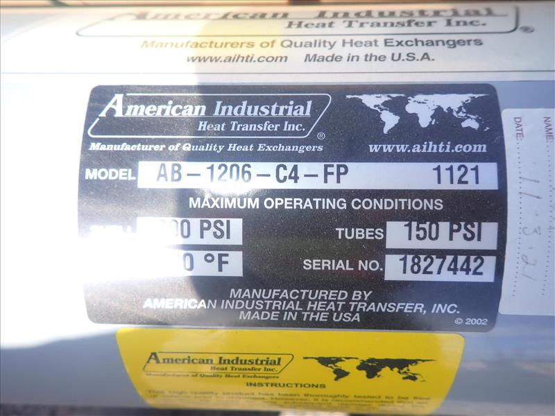 (2) heat exchanger, mod. AB-1206-C4-FP 1121 NEW (Tag 8331 Loc WH Yard)