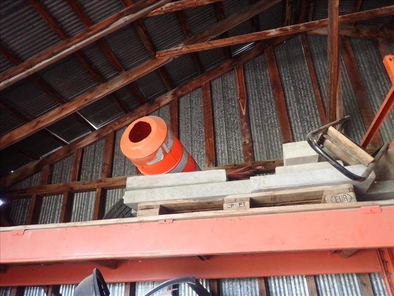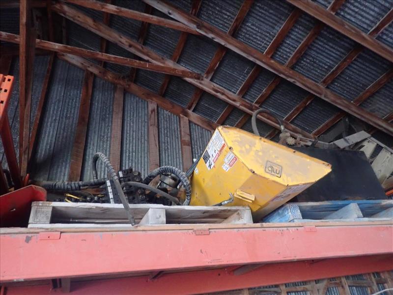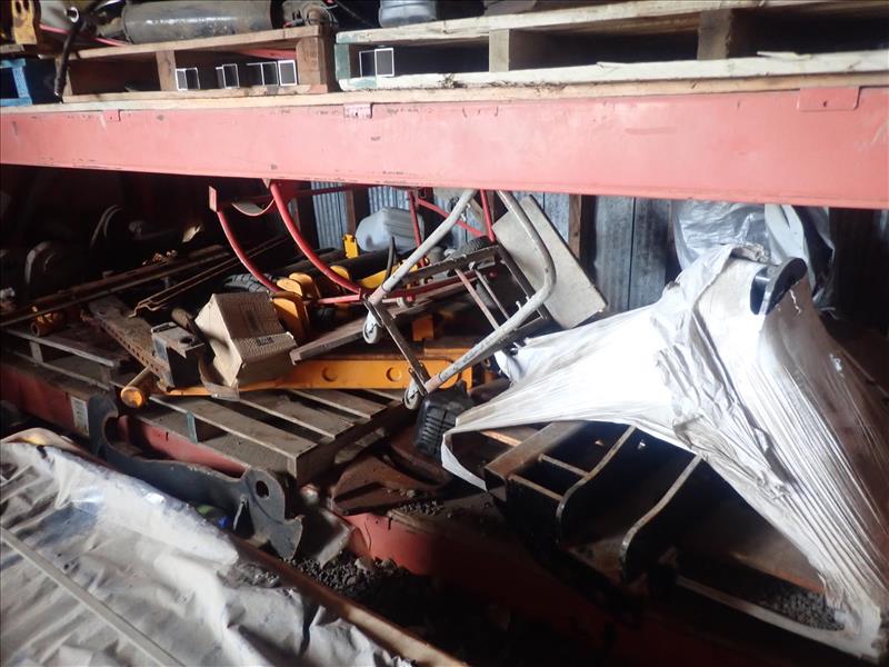 contents of racking: misc. spare parts, snow plow blades, tool boxes, etc.