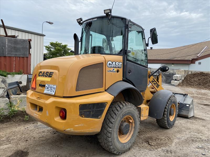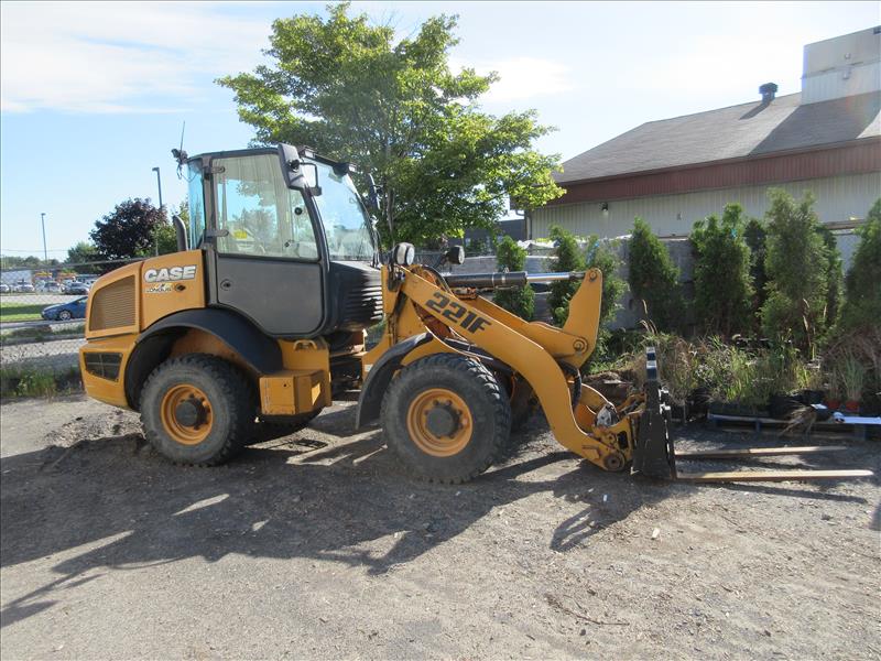 Case 221F Wheel Loader, enclosed cab, auxiliairy hydraulic system, HLA forks (unit 211), VIN FNH221FHNEHP00215, approx 3093 hrs, 2014
