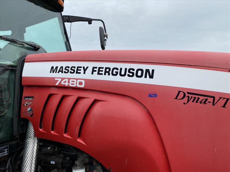Massey Ferguson 7480 Tractor, enclosed cab, ROPS, auxiliairy hydraulic system, 480/80R38 (18.4R38) tires, SN S271069, 2008