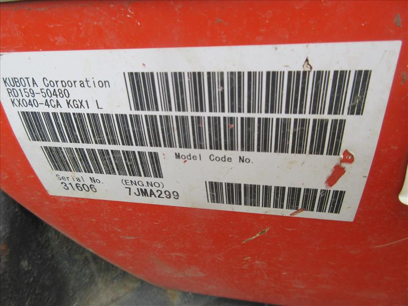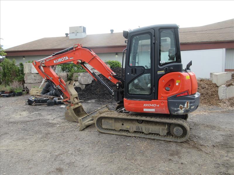 Kubota KX040-4G Mini Hydraulic Excavator, auxiliairy hydraulic system, hydraulic Q/C, rubber tracks, leveling blade, hydraulic thumb, digging bucket, VIN JKUK0404C01H31606, approx 2157 hrs, 2019