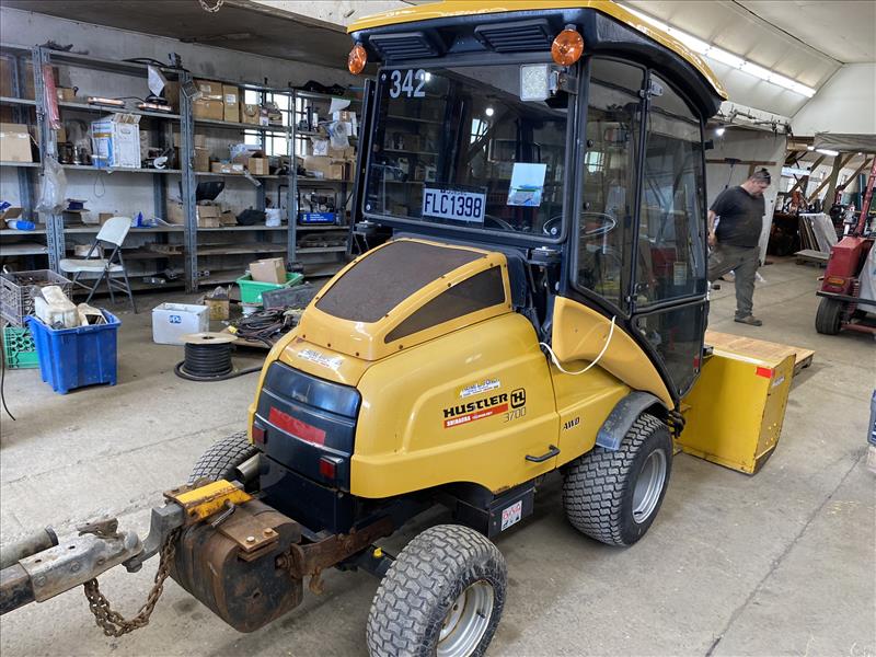 Hustler 3700 AWD Ride-On Lawn Mower, enclosed cab, single auger snowblower, auxiliairy hydraulic systems, SN 15044020, approx 1010 hrs, 2017