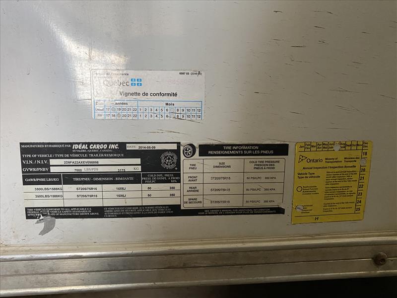 Id?al Cargo Tandem Axle Enclosed Trailer, GVWR 7000lbs, ST205/75R15 tires, side door, VIN 2D9FA22AXEV098898, 2014