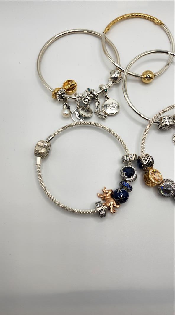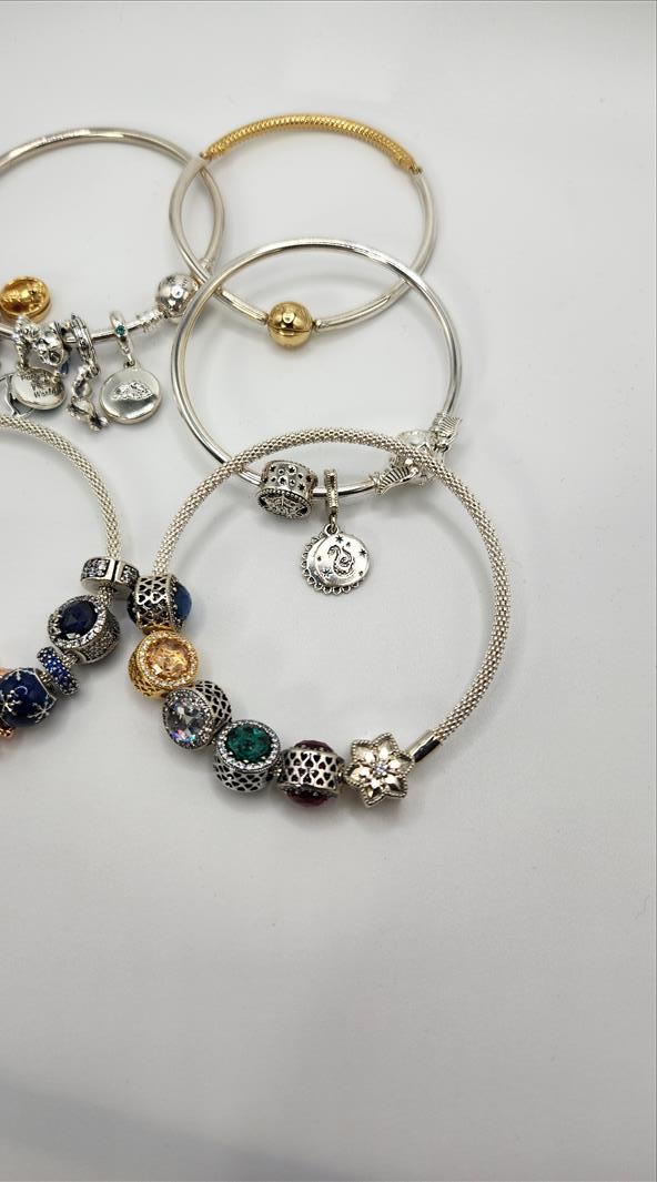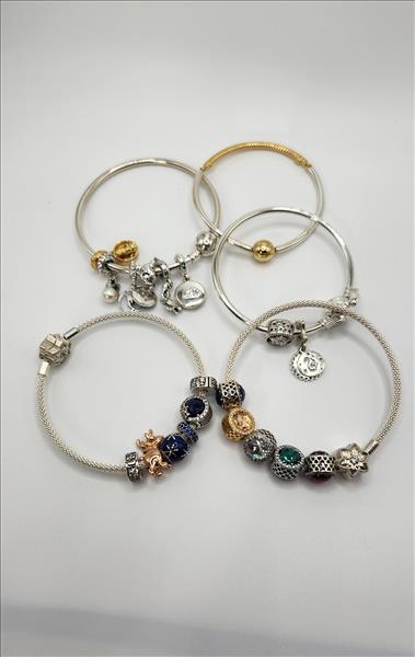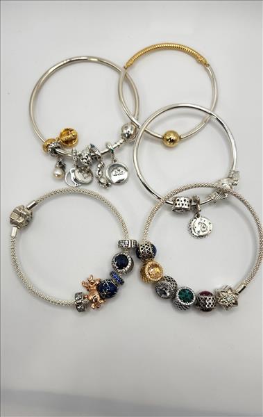 (5) Pandora charm chain bracelet c/w a variety of charms
