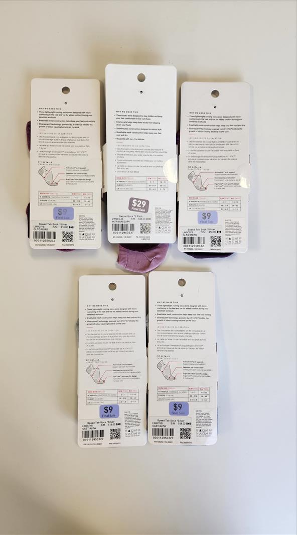 (5) Lululemon secret socks, packs of 3