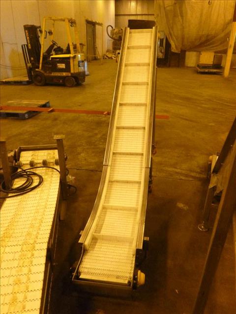 Diversified Fluted Elevator Conveyor on castors, s/s, approx. 12 in. x 9.5 ft., c/w water-tight s/s motor & gearbox (I.D. No. 109)