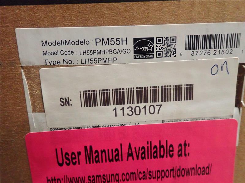 55 in. Samsung HD LED LFD professional large format display/digital signage, mod. PM55H, 1920 x 1080, HDMI, WiFi, Samsung Smart Signage, BlueTooth remote control, T2 refurbished