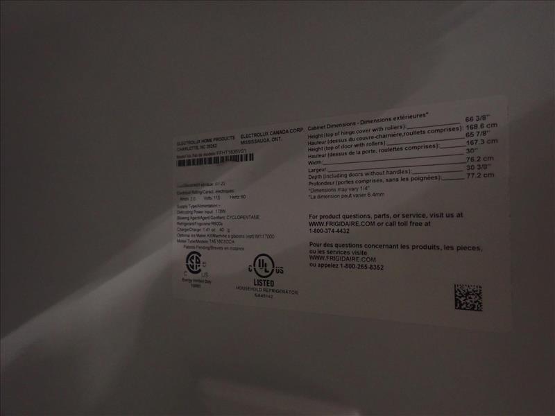 Frigidaire top freezer refrigerator, mod. FFHT1B35VS1, stainless steel finish, 30 in. W x 31 D x 67 in. H, MC refurbished