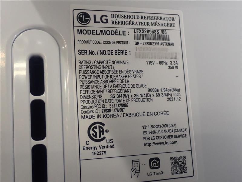 LG bottom freezer french door refrigerator, mod. LFXS28968S/08, ice maker, stainless steel finish, 35 in. W x 37 D x 70 in. H, MC refurbished