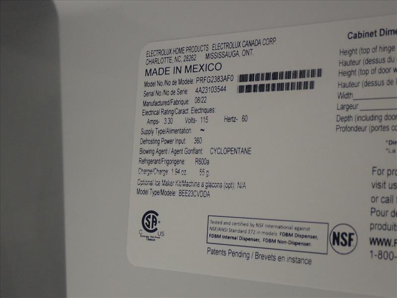 Frigidaire Professional bottom freezer french door refrigerator, mod. PRFG2383AF0, stainless steel finish, 36 in. W x 29 D x 68 in. H, MC refurbished