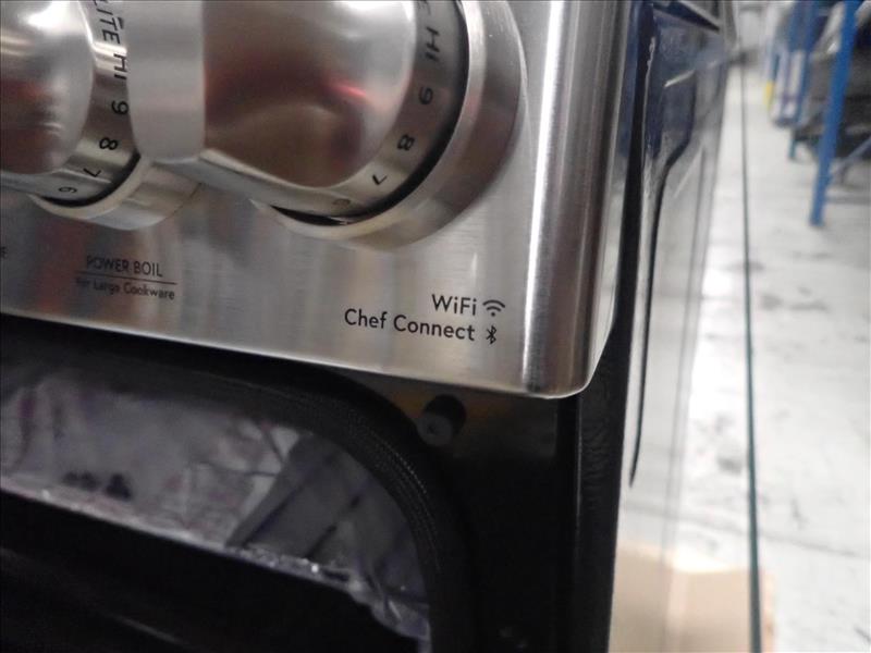 GE Cafe double-oven 6-durner range, mod. CCGS750P2MS1, stainless steel finish, 30 in. W, LNG/LPG, WiFi/Bluetooth ChefConnect, front griddle zone