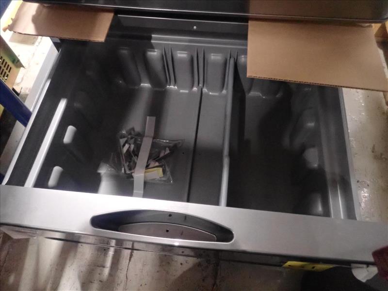 Samsung pedestal storage drawer, mod. WE402NP/A3, stainless steel finish, 27 in. W, T3 refurbished