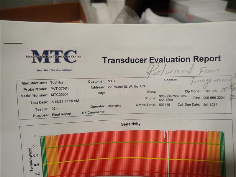 Toshiba ultrasound probe, mod. PVT-375BT, ser. no. MTC0001, refurbished