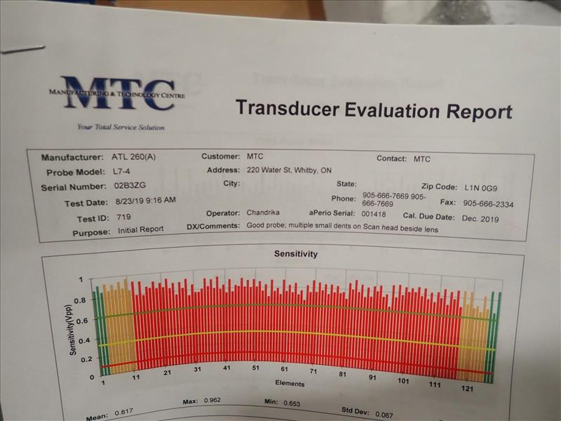 Phillips-ATL ultrasound probe, mod. L7-4, ser. no. 02B3ZG, refurbished