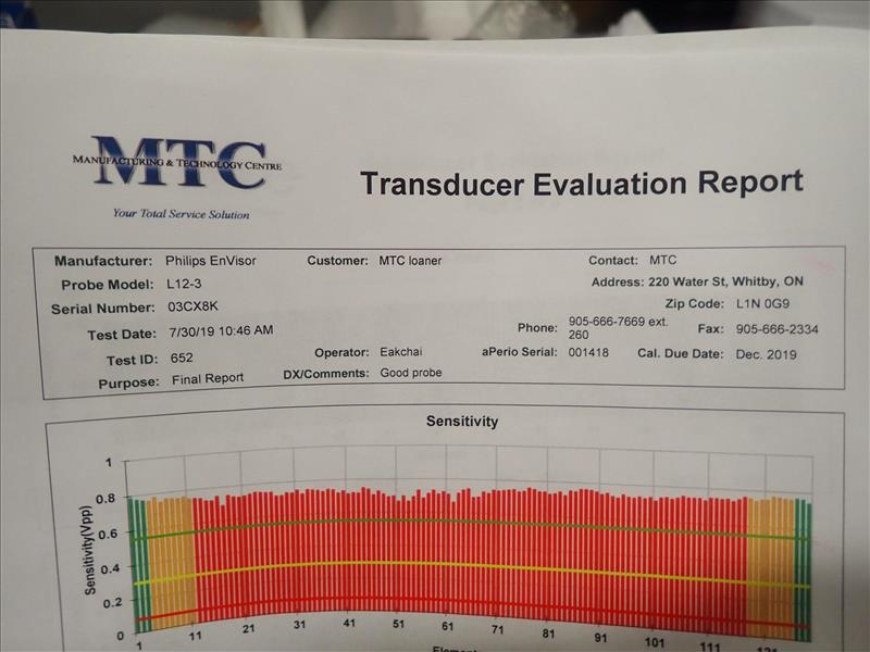 Phillips ultrasound probe, mod. L12-3, ser. no. 03CX8K, refurbished