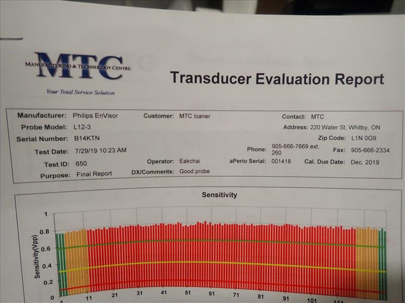 Phillips ultrasound probe, mod. L12-3, ser. no. B14KTN, refurbished