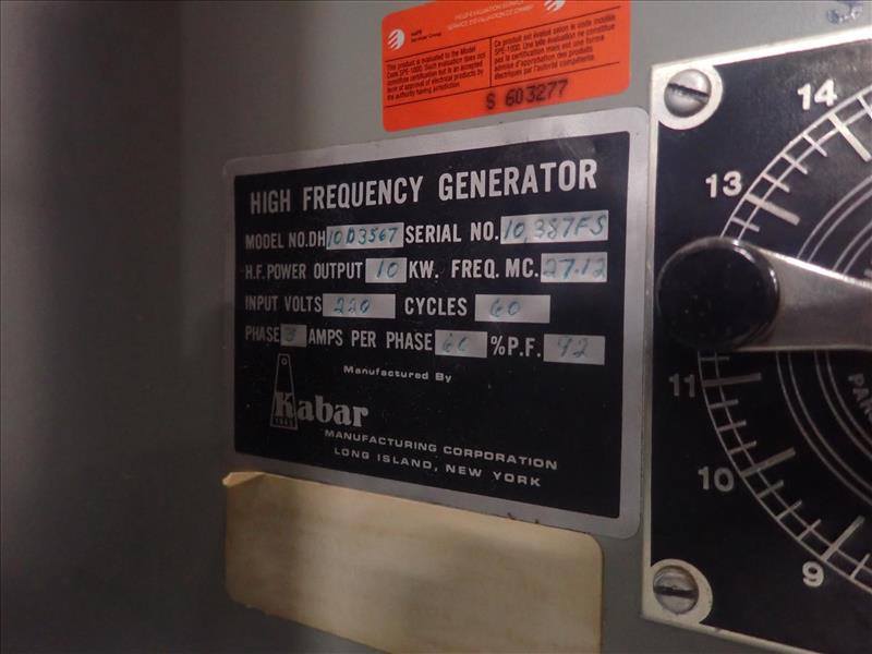 Kabar RF high frequency sealer, mod. 1003567, ser. no. 10387SF w/ turntable