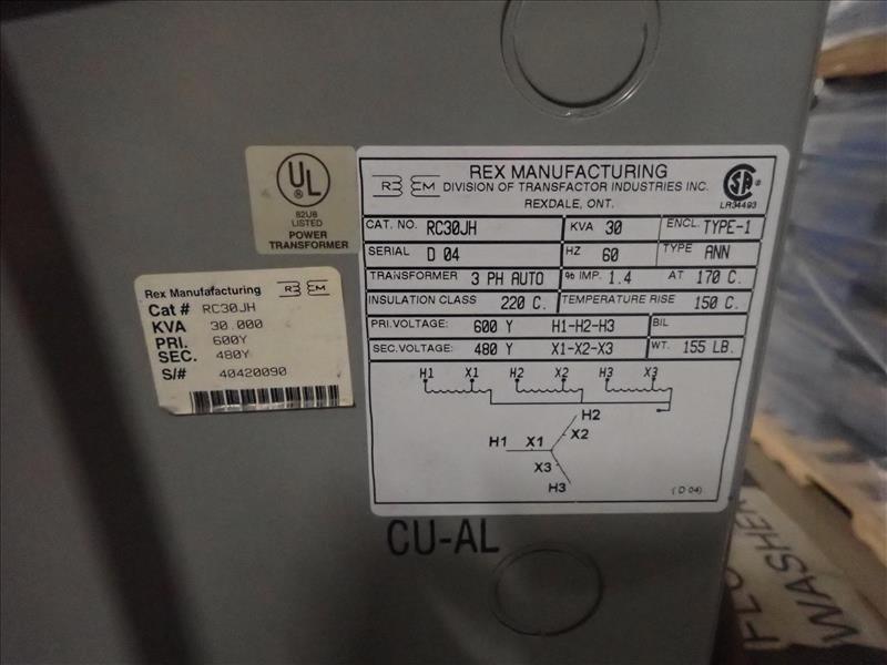 Tennant 36V lift truck battery charger c/w Rex 30 KVA transformer