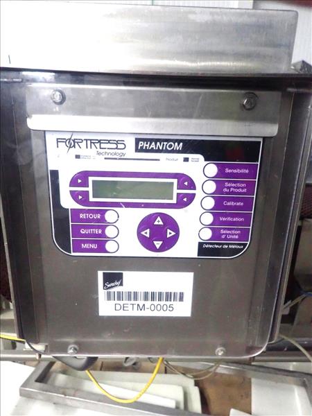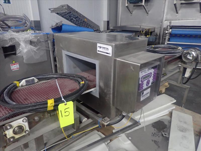 Fortress inline metal detector, mod. Phantom, approx. 7 in. x 15 in. aperture, c/w approx. 12 in. x 156 in., 1 hp belt conveyor, stainless steel
