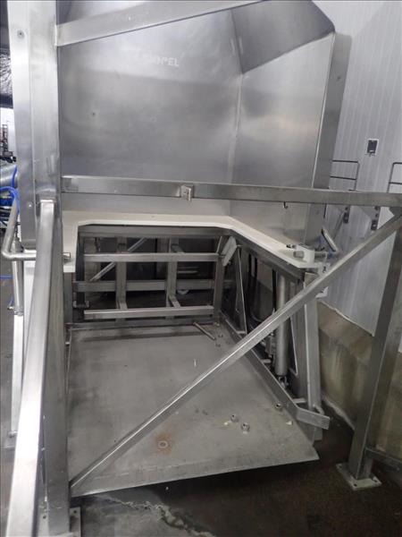 Riopel buggy dumper, hydraulic, approx. 42 in. x 42 in. platform, 90 in. dump height, hydraulic, stainless steel