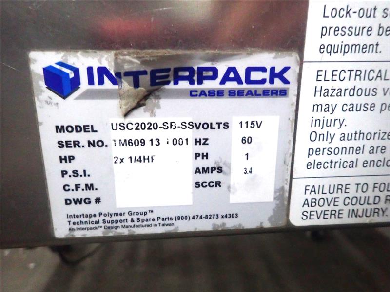 Interpack case sealer, mod. USC2020-SB-SS, ser. no. TM60913001, w/ HSD2000-ET II SS top tape-head, stainless steel