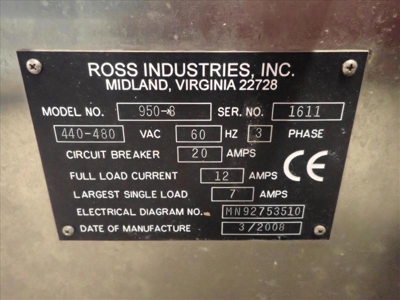 Ross meat slicer, mod. 950-8, ser. no. 1611, stainless steel