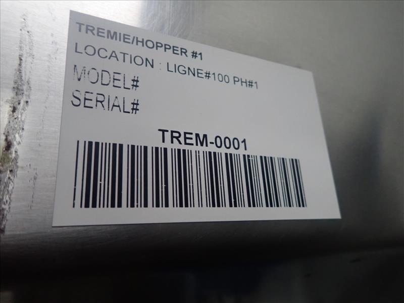 Riopel hopper, approx. 50 in. x 88 in., stainless steel