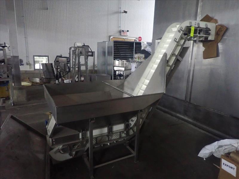 Marel hopper/conveyor, mod. 000-MSGN, ser. no. A064999, elevated, 84 in. discharge height, fluted 10 in. belt, hydraulic, stainless steel