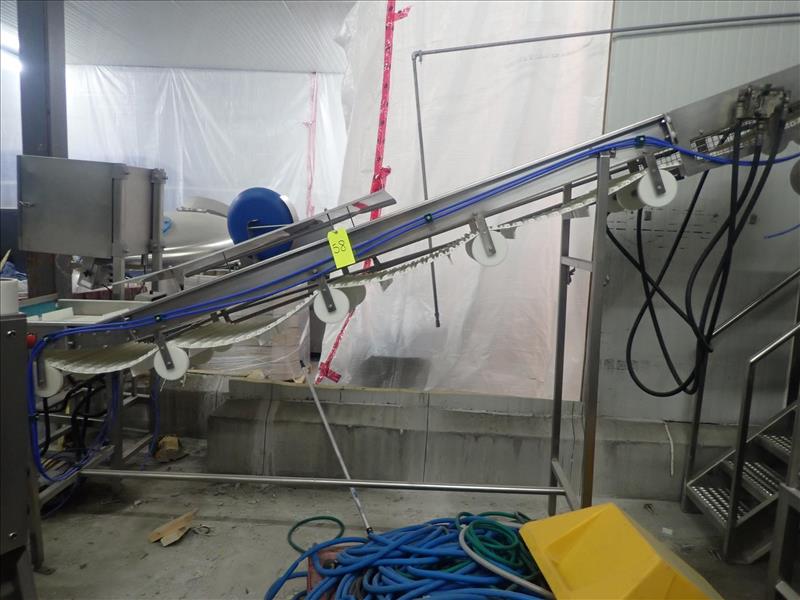 conveyor, approx. 24 in. x 12 ft fluted belt, elevated, 96 in. discharge height, hydraulic, stainless steel