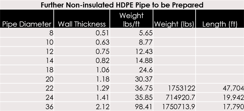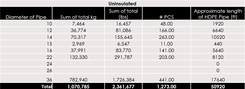 Non-Insulated HDPE Pipes varying lengths and diameters