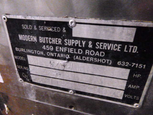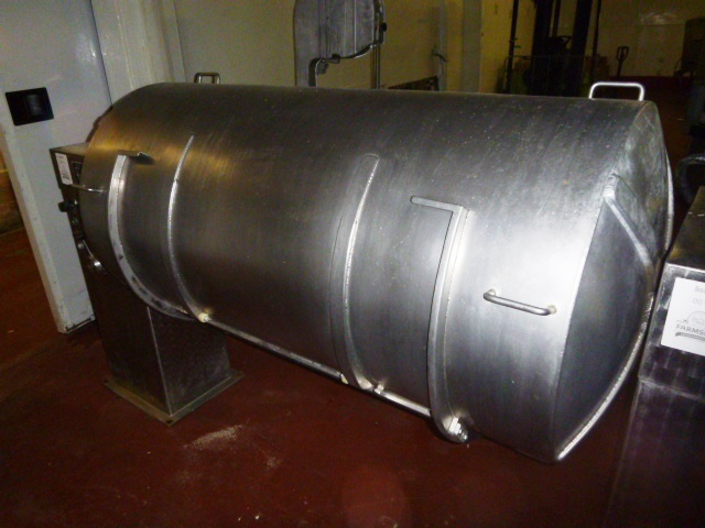 Modern Butcher Supply M.B.S. Tumbler, s/n 29485, 800LTR capacity, s/s, c/w Busch 2hp vacuum pump (missing lid)