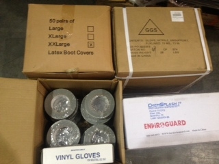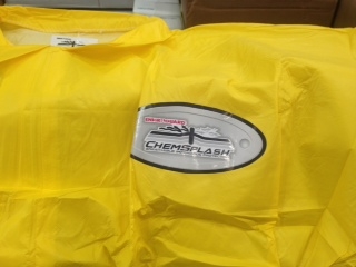 Lots 997 - 1013 (Various Qty. Per Lot)CHEMSPLASH 2XL VAULTED PPE CONSISTING OF CHEMSPLASH COVERALLS, LATEX BOOT COVERS, INNER NITRILE GLOVES, OUTER NITRILE GLOVES AND DUCT TAPE ID#: 850001