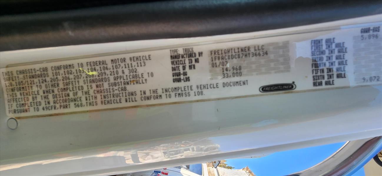 Freightliner pole truck, mod. BusinessClassM2, VIN 1FVACXDCX7HY36664 (2007), dual-rears, outriggers c/w Terex Commander C4047 bucket lift, ser. no. 2080135999, 500 lbs cap. [TAG 16]