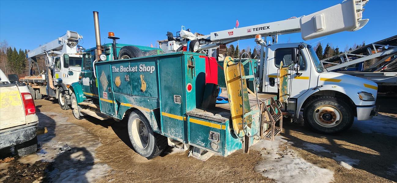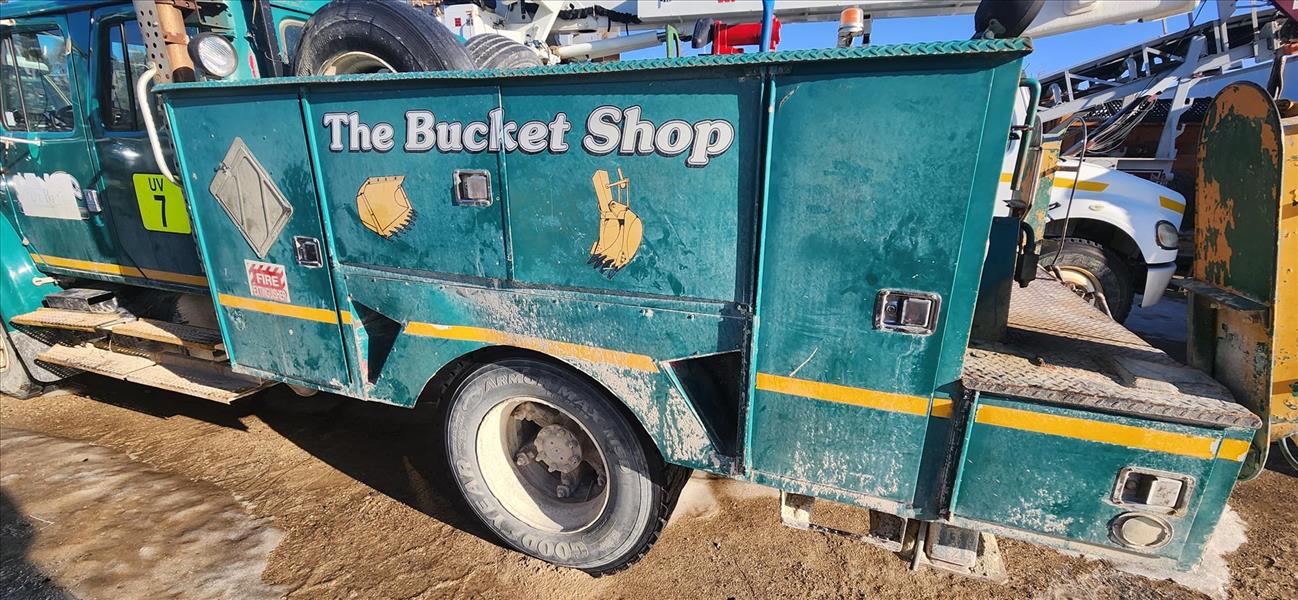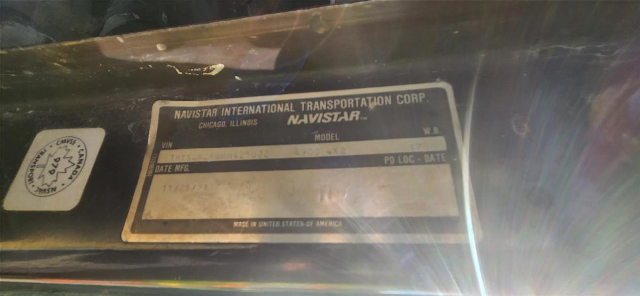 International service truck, mod. 4900 4x2, VIN 1HT5DNZR8NH425022 (1991), crew-cab, dual-rears, outriggers, approx. 62553 km c/w 995 L diesel tank w/ Fill-Rite 12 V pump, 20 gpm (The Bucket Shop) [TAG 18]