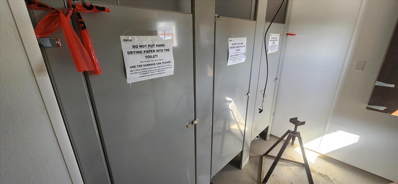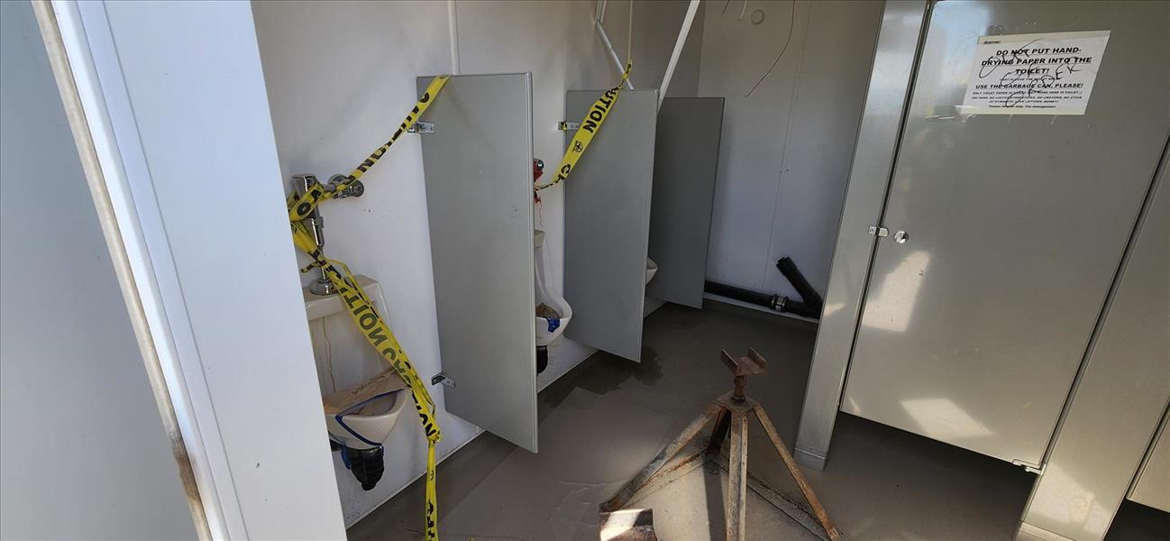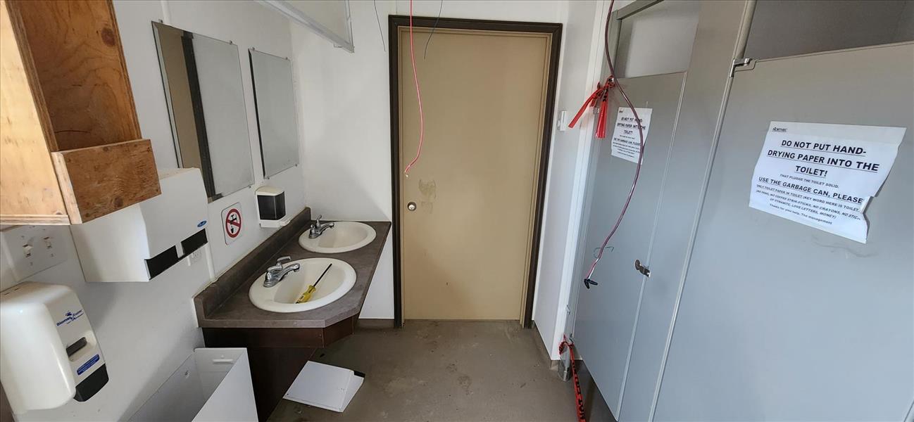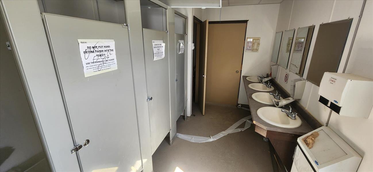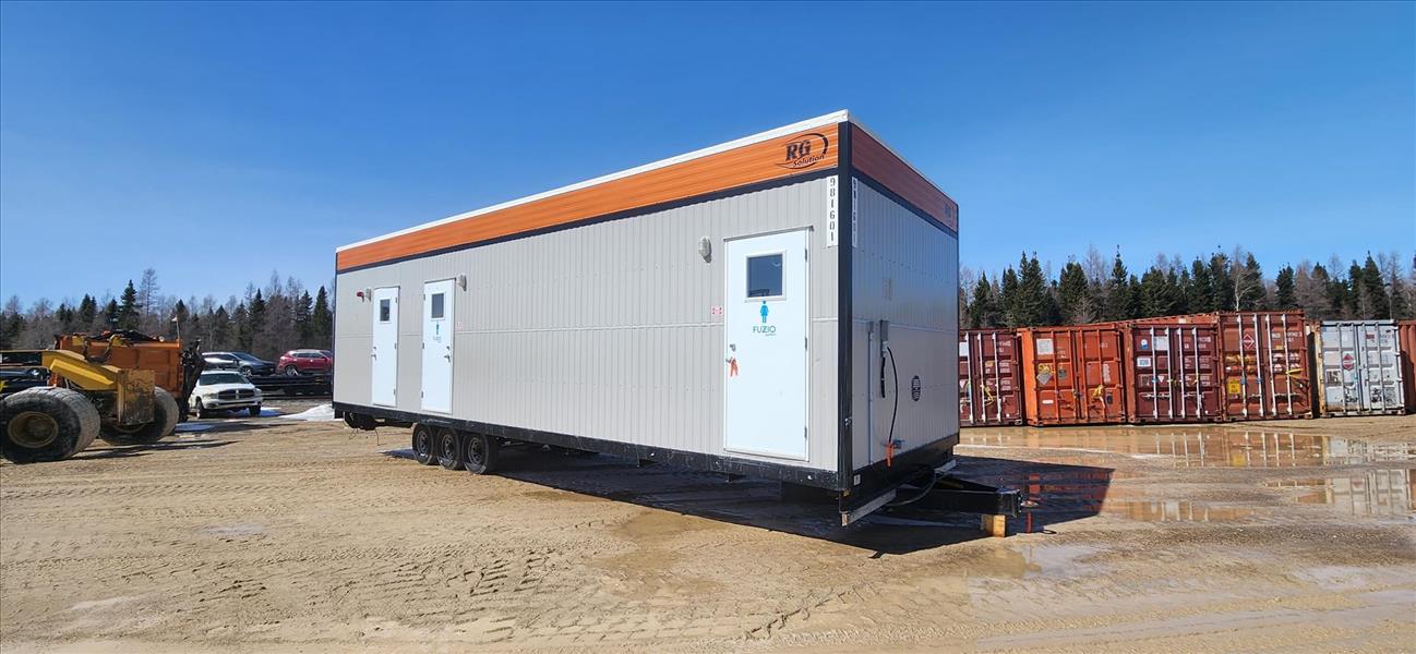 RG Solutions men's/women's portable washroom trailer, 6-stalls, 3-urinals, sinks, (2) 1000 gal. poly tanks, etc. [TAG 1410]