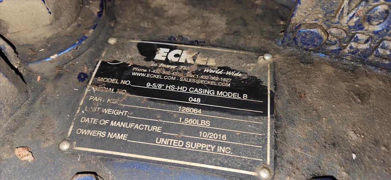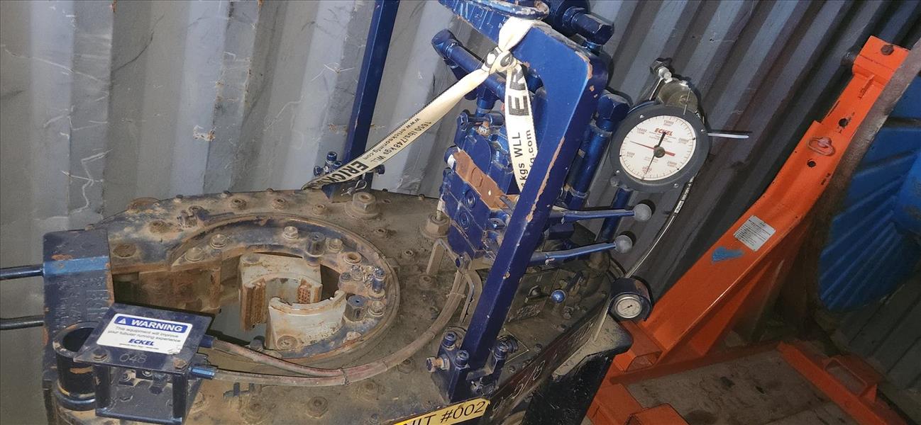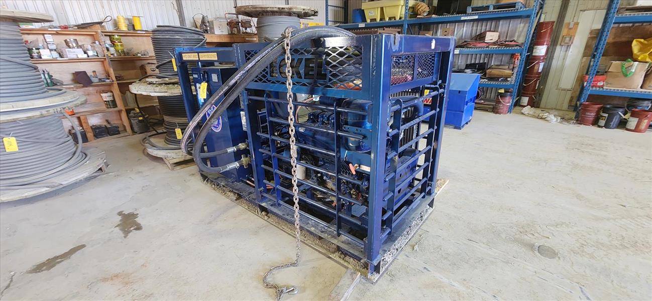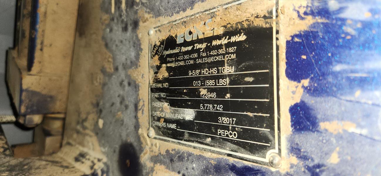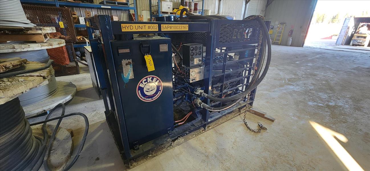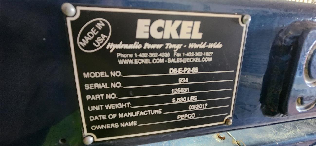 Ecklel casing tong unit, mod. 9-5/8 in. HS-HD/B/T6BJ, tri-grip w/ radial lock door c/w Eckle diesel hydralic pack, mod. D6-E-P2-65, ser. No. 934 (2017), 111 hrs. w/ Duetz engine [TAG 1369/1370 / LOC 980532-0]